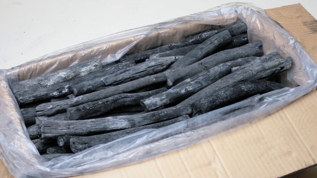 タイのお隣に位置するラオス人民民主共和国内の自社工場で生産する備長炭です。爆跳が少なく扱いやすいのが特長です。海外産備長炭(主に中国産)の入手が困難となった現在、それに替わる炭として最も期待されている備長炭といえます。原木はマイテューです。