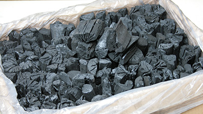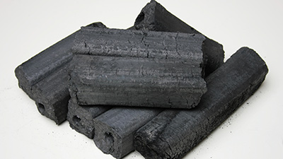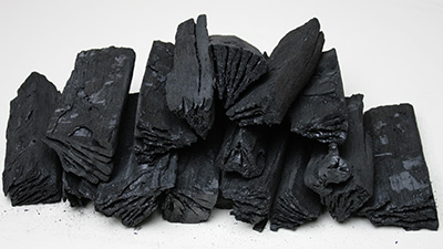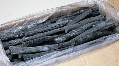 中国産のオガ炭に比べ灰が白く軽い点が特長です。原木には南洋材を使用しています。